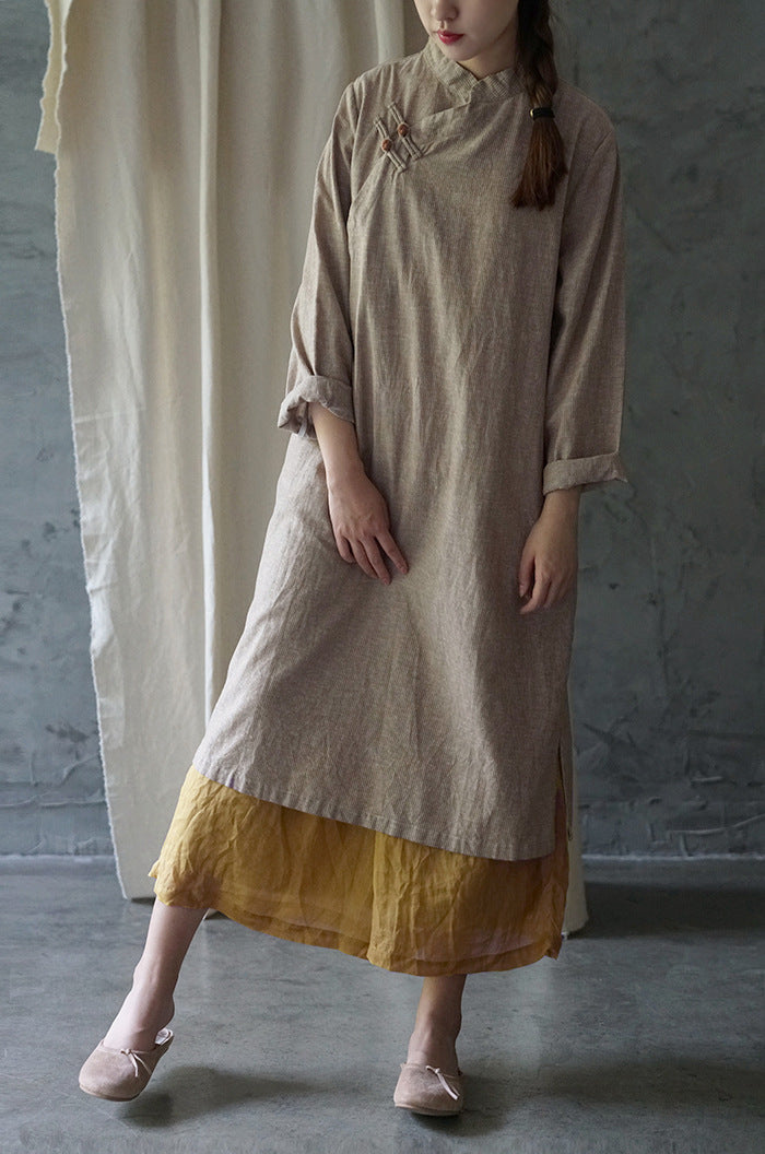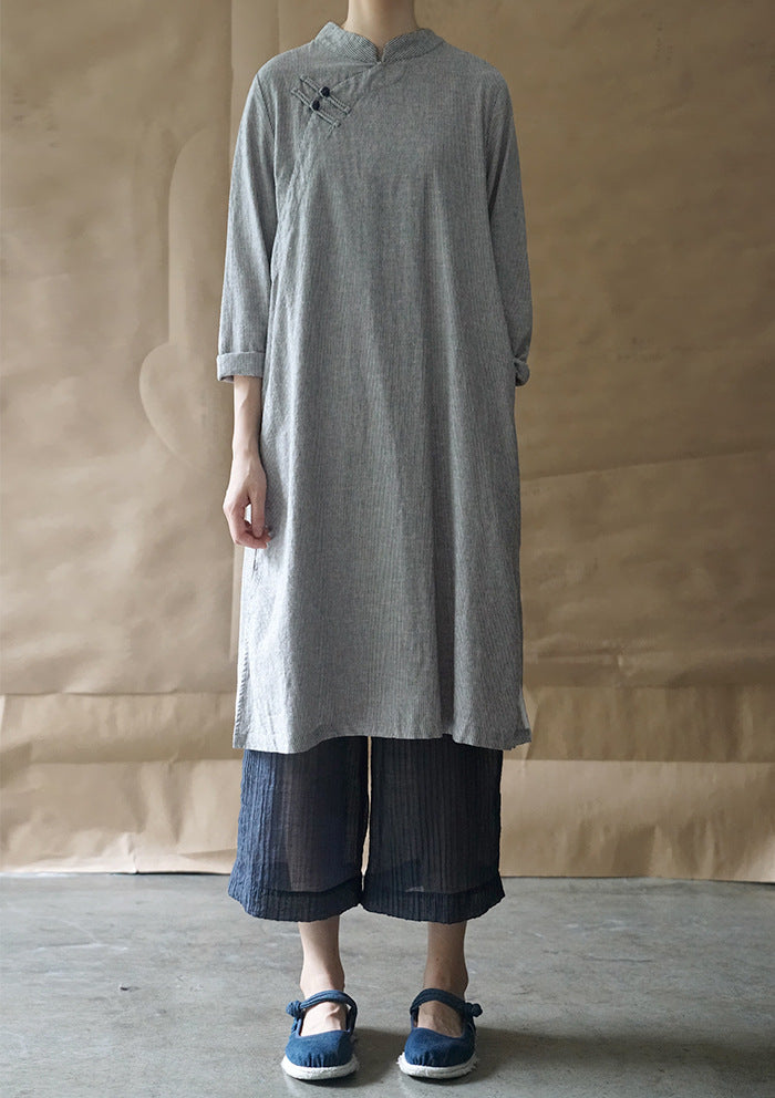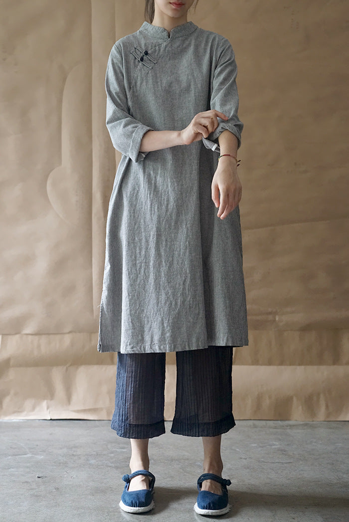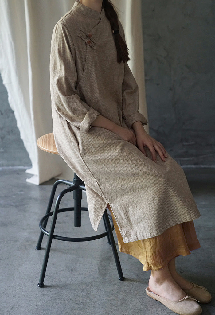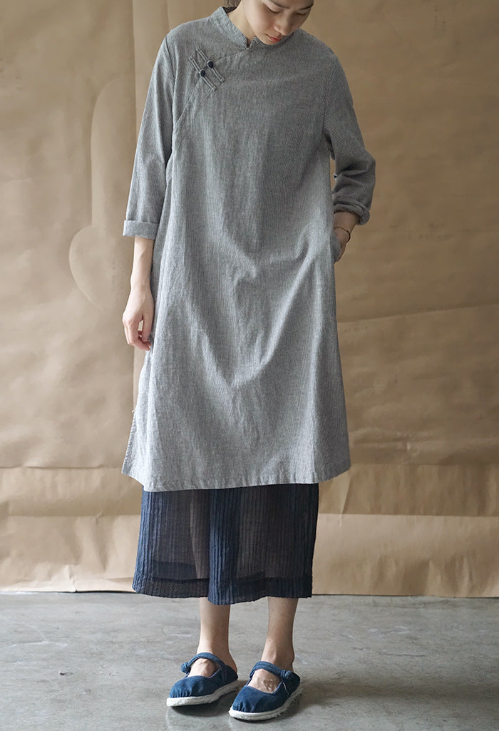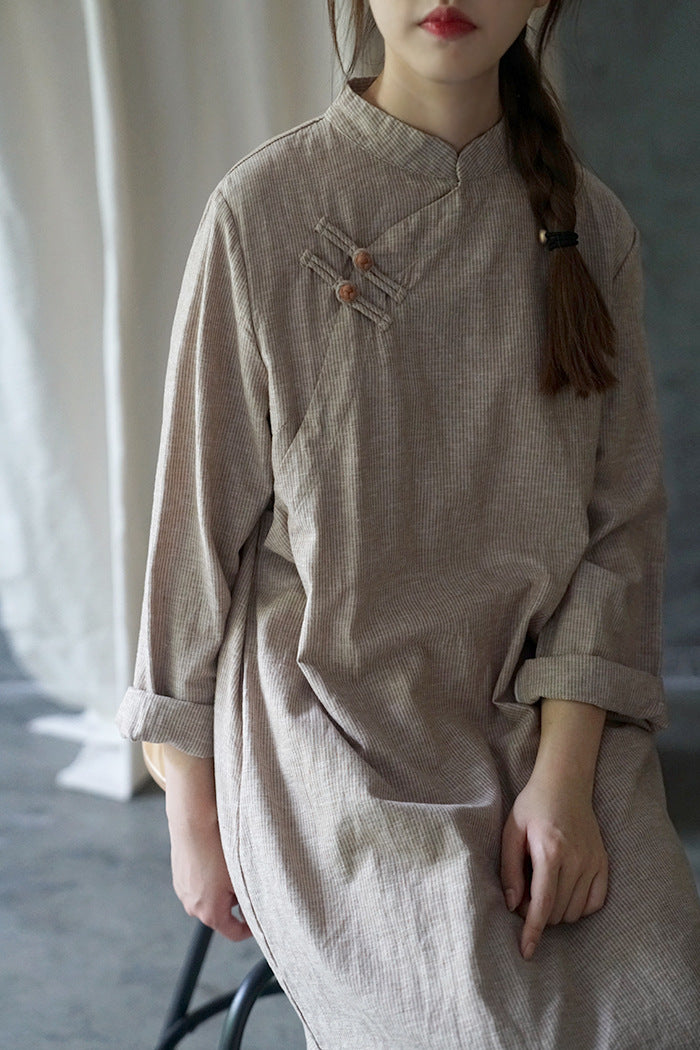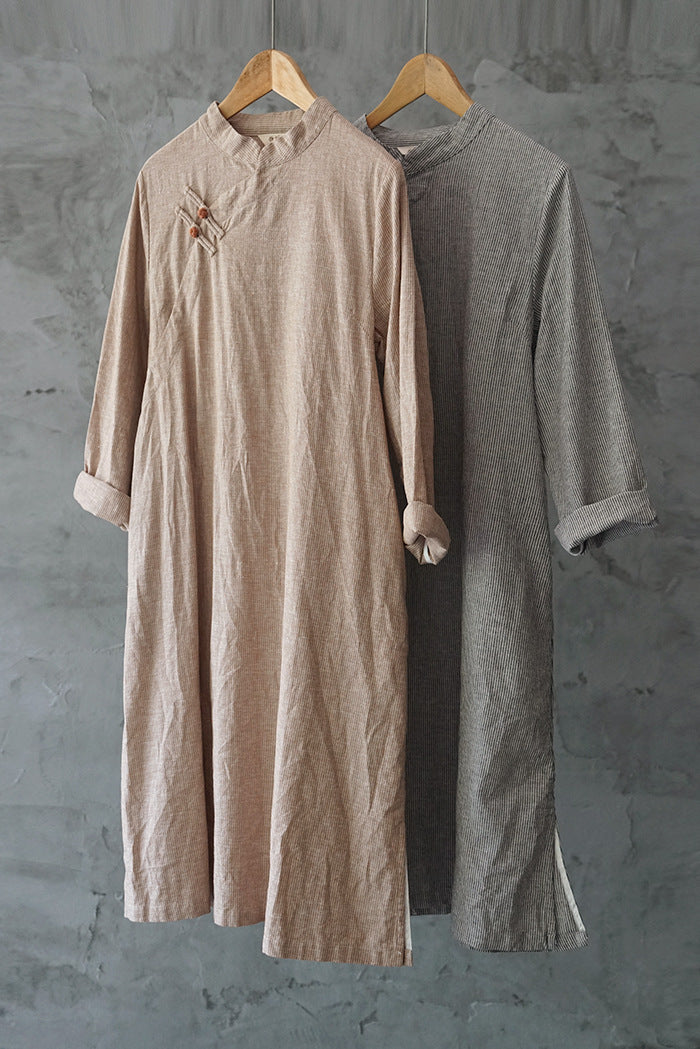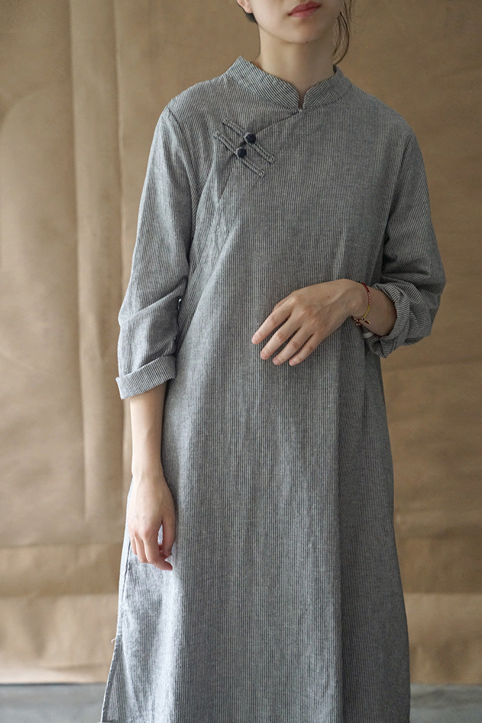 Elegant Stripe Cheongsam Dress