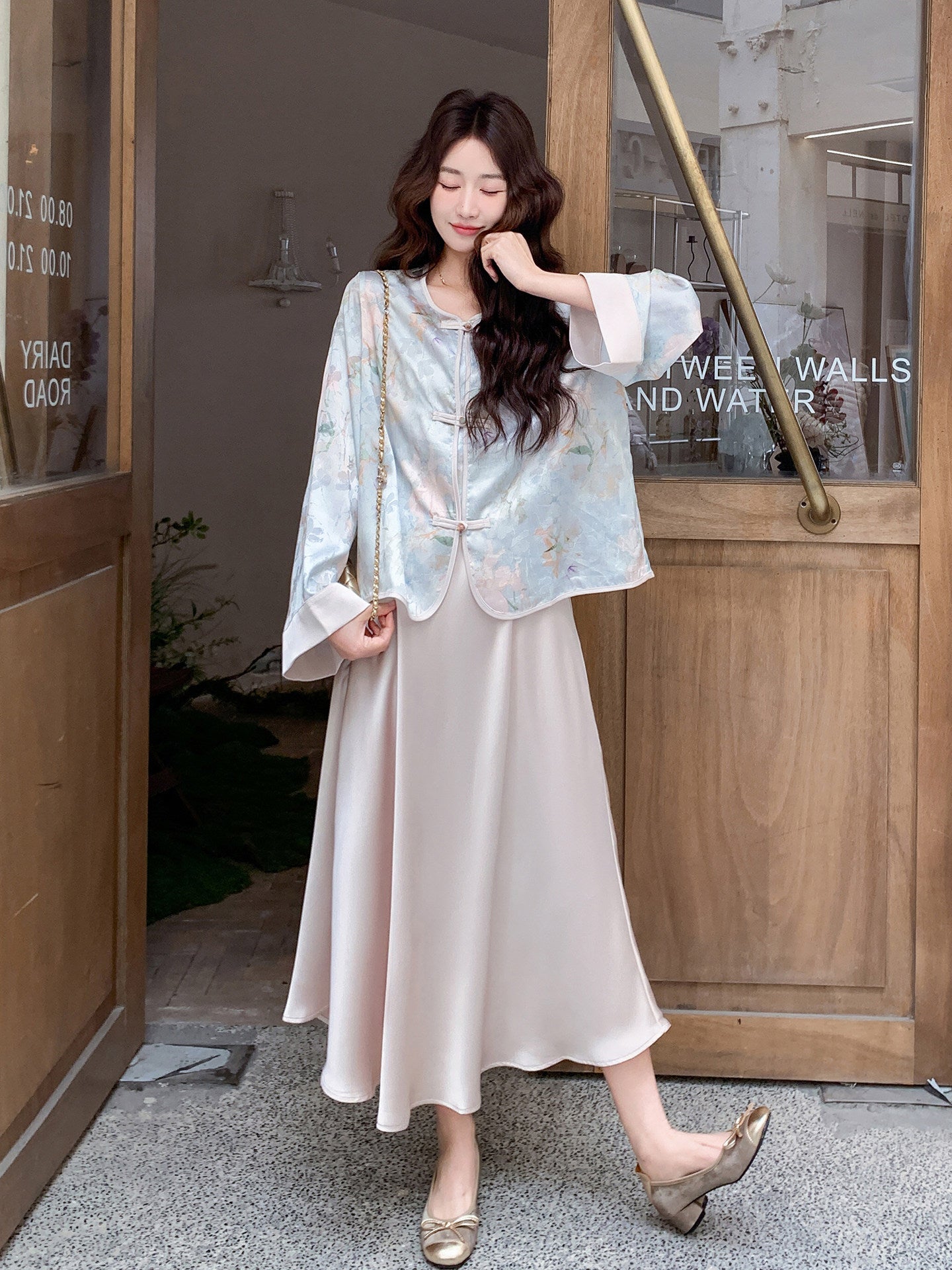 Set dua potong ini menampilkan jaket modern yang terinspirasi oleh Cheongsam, dipasangkan dengan rok suspender yang stylish. Cocok untuk acara musim semi atau pertemuan kasual, pakaian ini menampilkan elemen-elemen tradisional seperti detail tombol sambil mempertahankan siluet kontemporer. Desain yang ramping meningkatkan bentuk tubuh Anda, membuatnya menjadi pilihan ideal untuk berbagai kesempatan, dari brunch hingga acara malam.