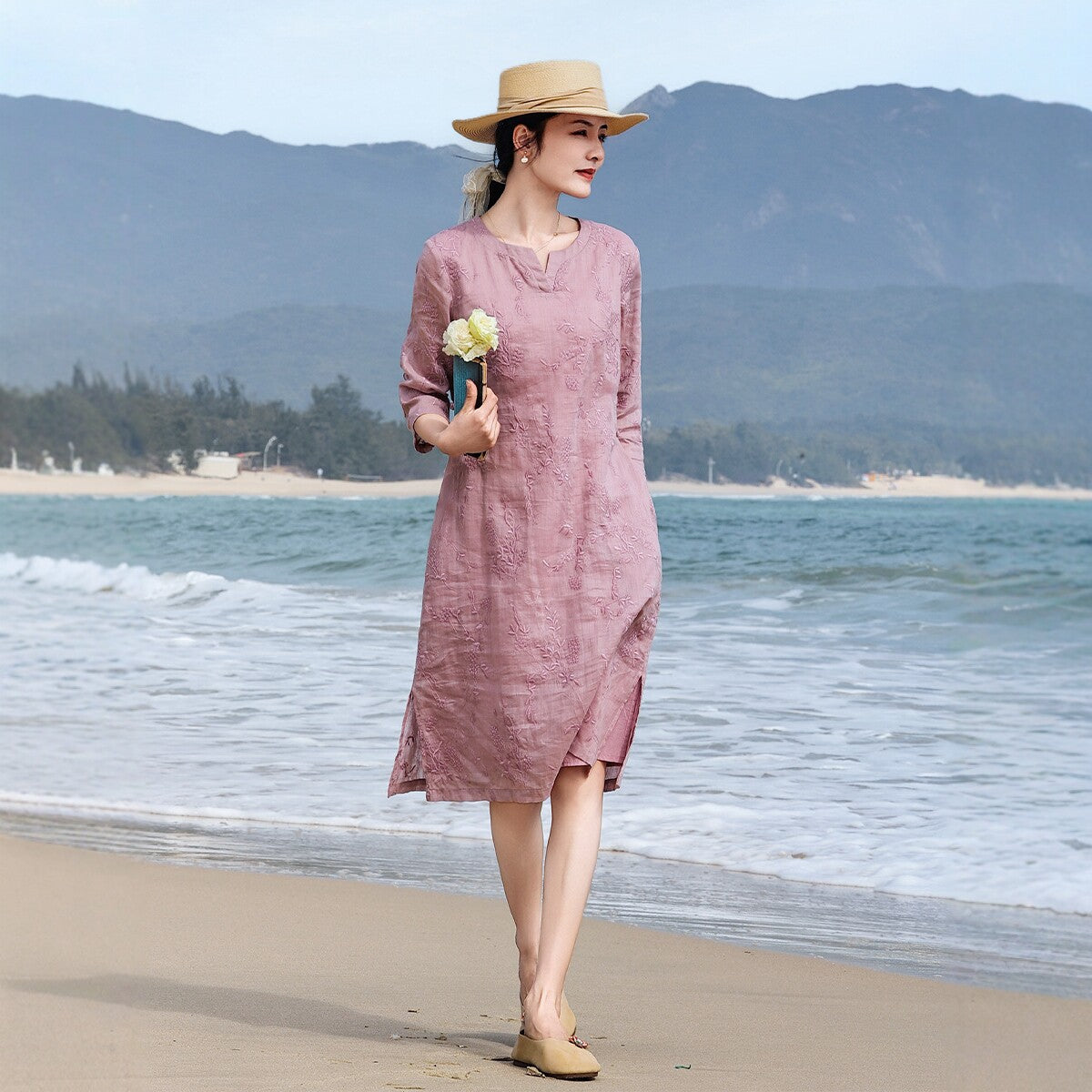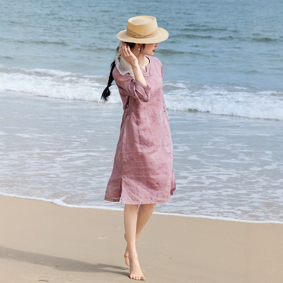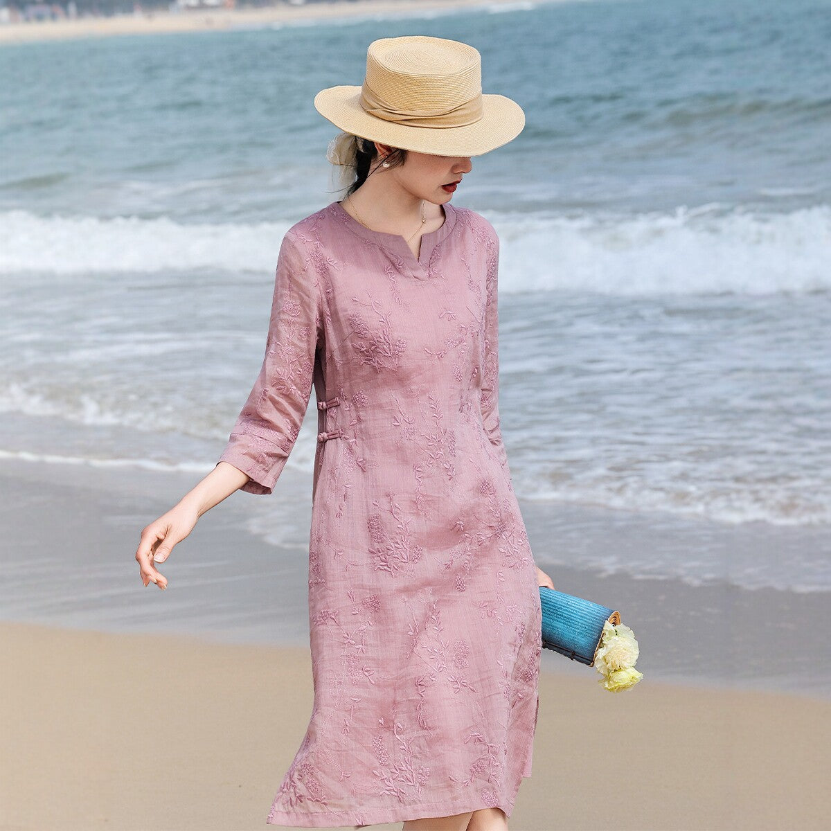 Fiorella Charming Embroidered Cheongsam Dress Improved Collar Qipao