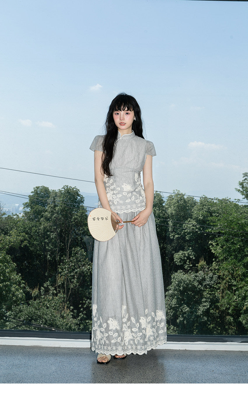 Linda Satin Glow Embroidery Qipao Cheongsam Two Piece