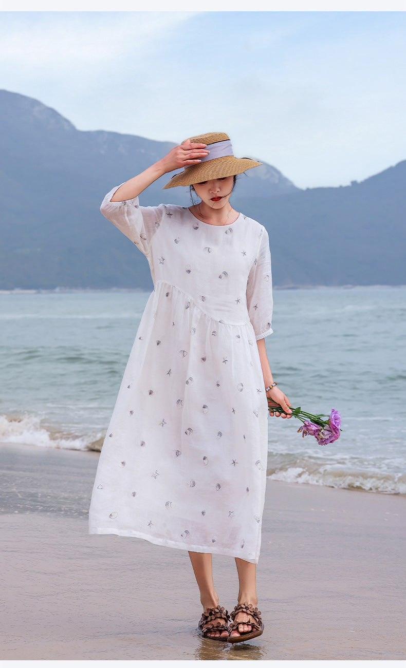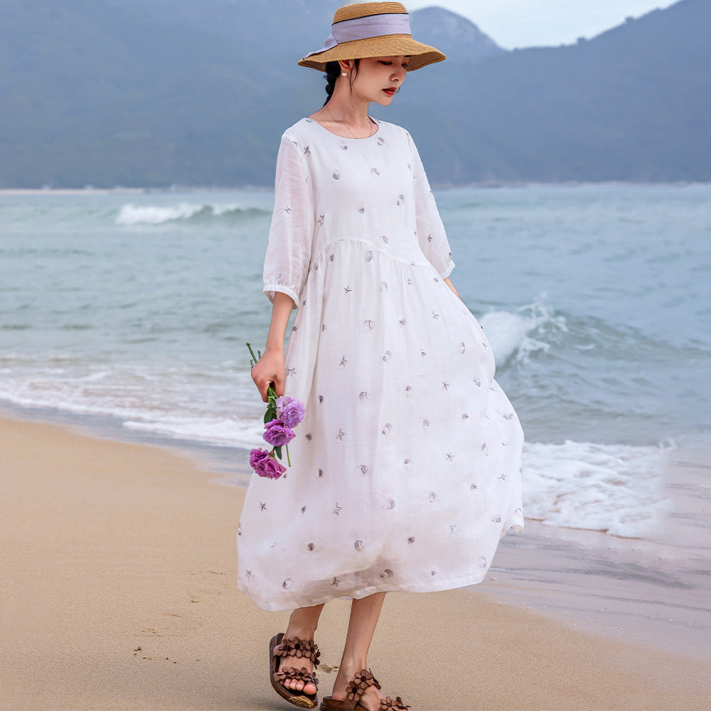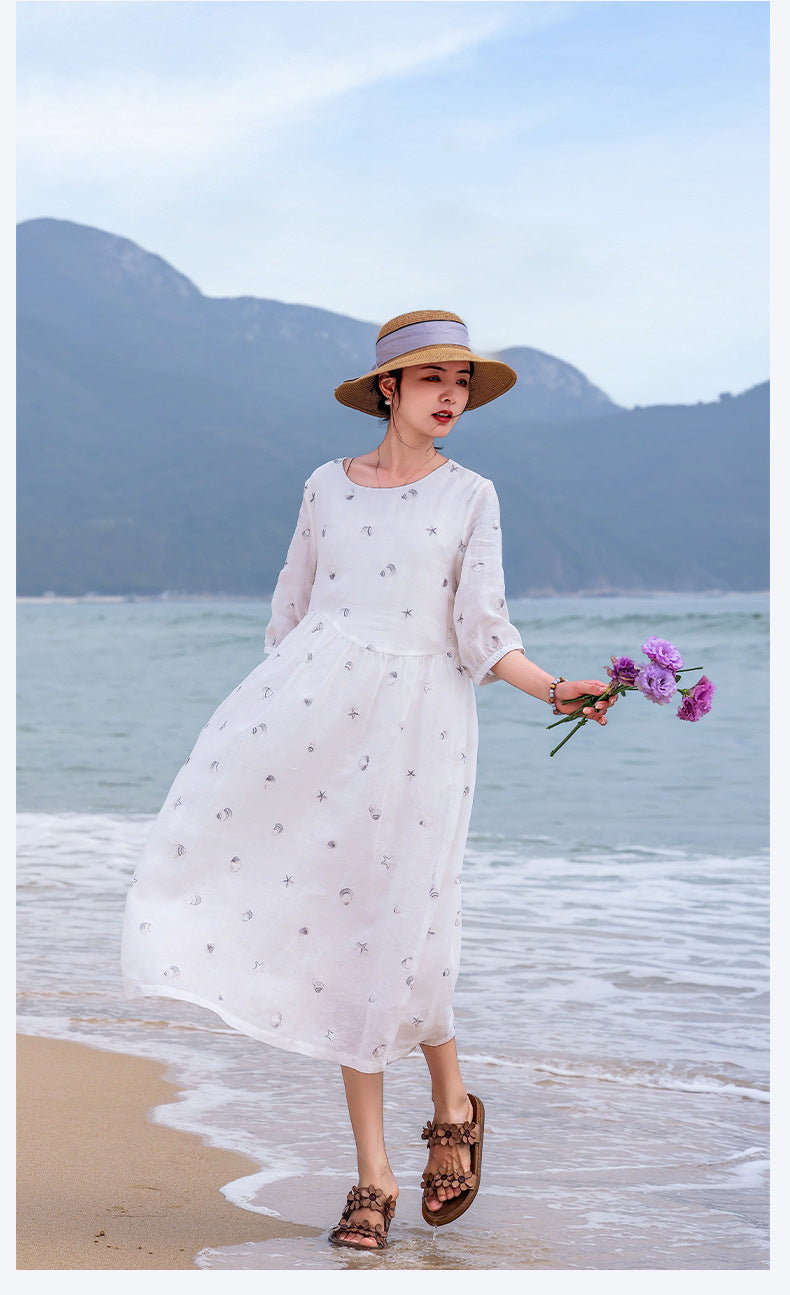 Purity Ornamental Ramie Cheongsam Dress Embroidered Qipao