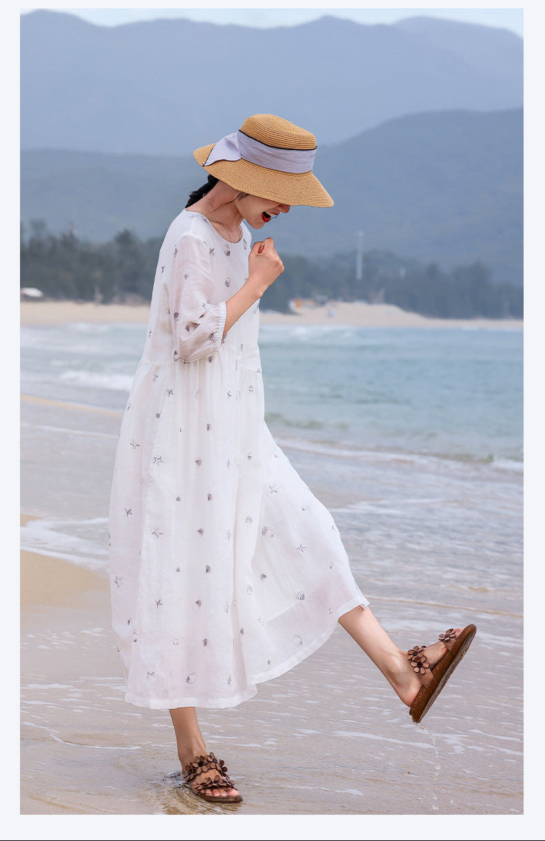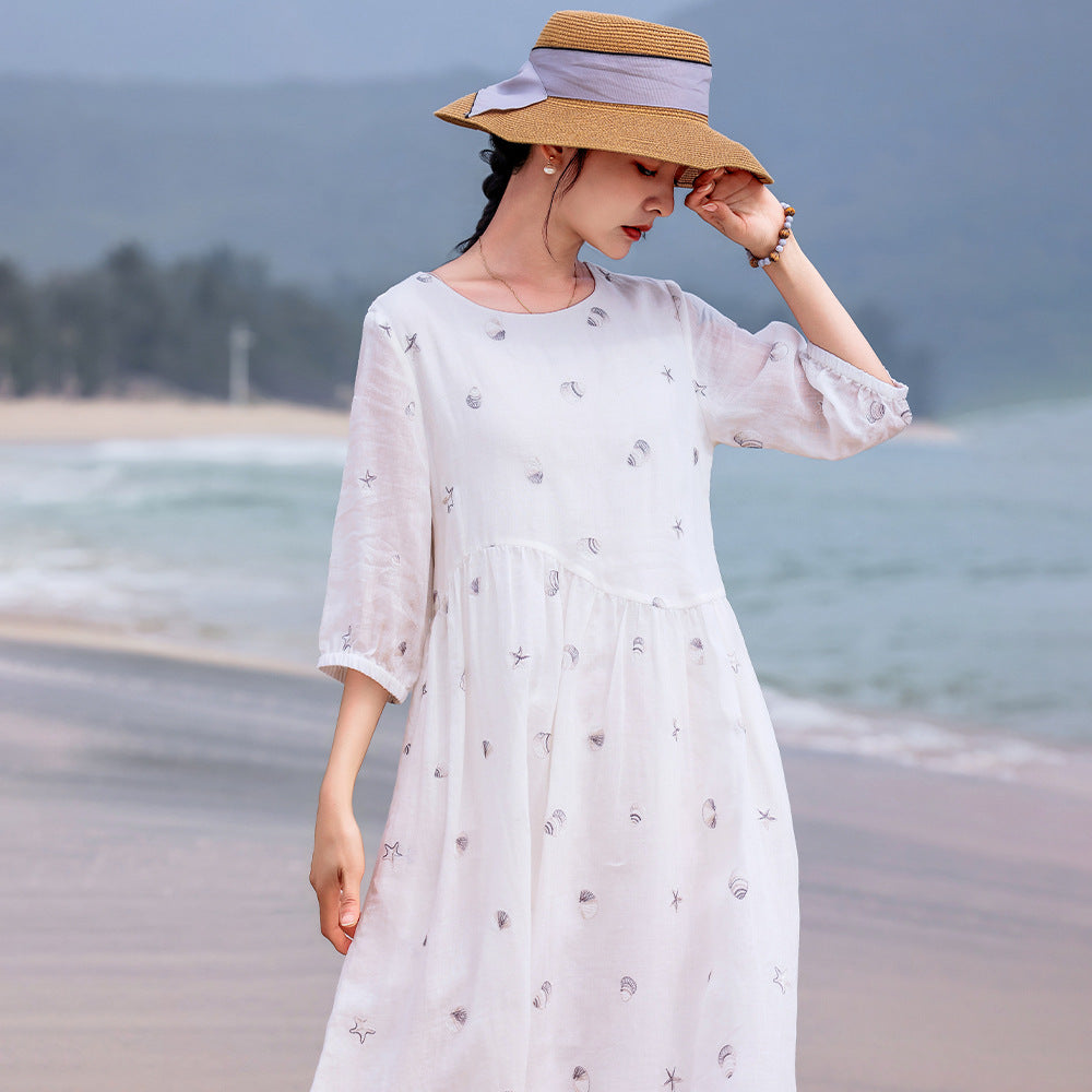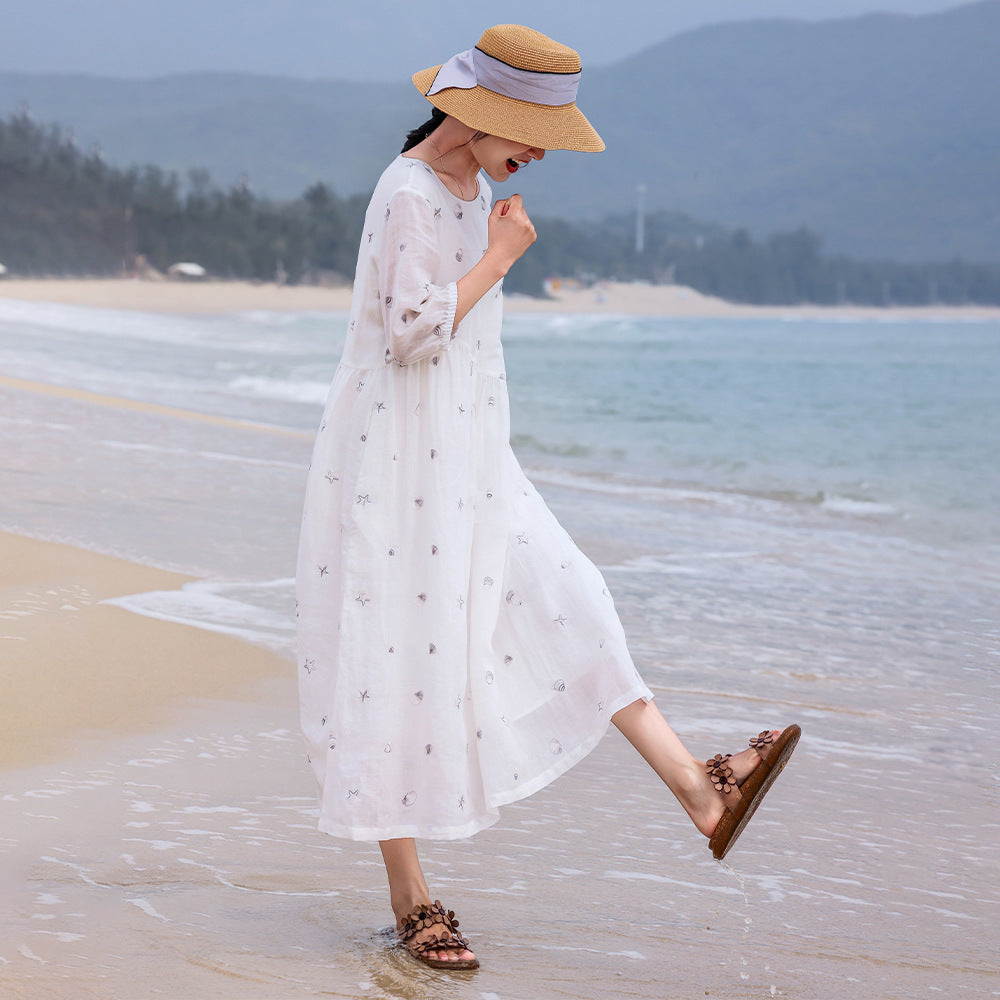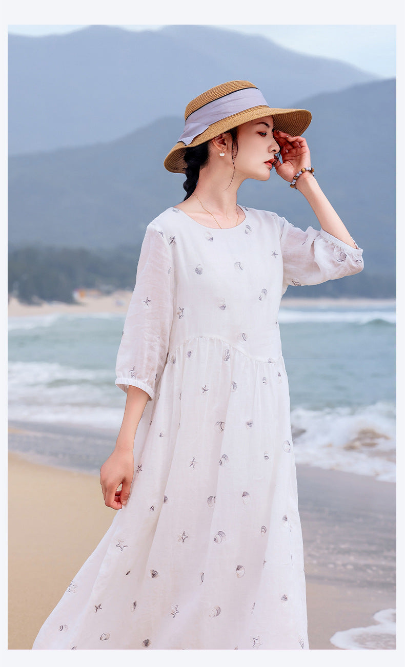 Purity Ornamental Ramie Cheongsam Dress Embroidered Qipao