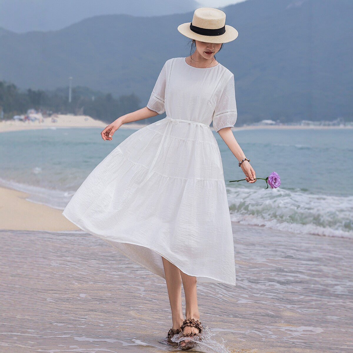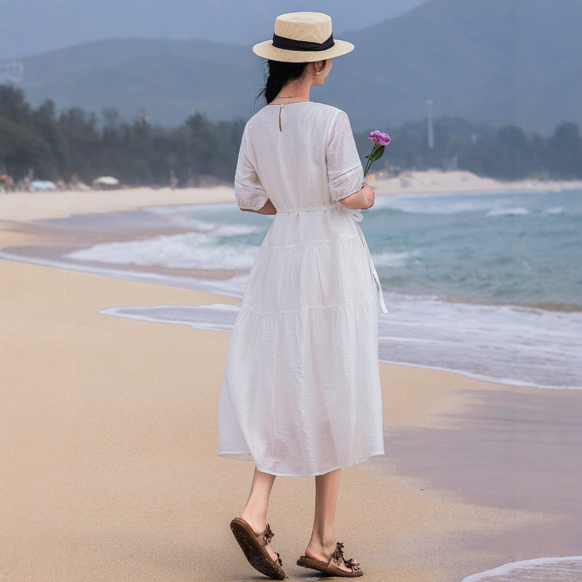 Ruby Classic Ruby Cotton Linen Cheongsam Dress Puff Sleeves Qipao