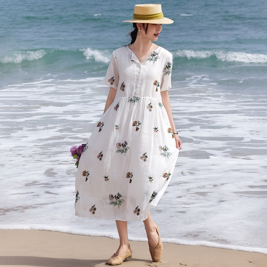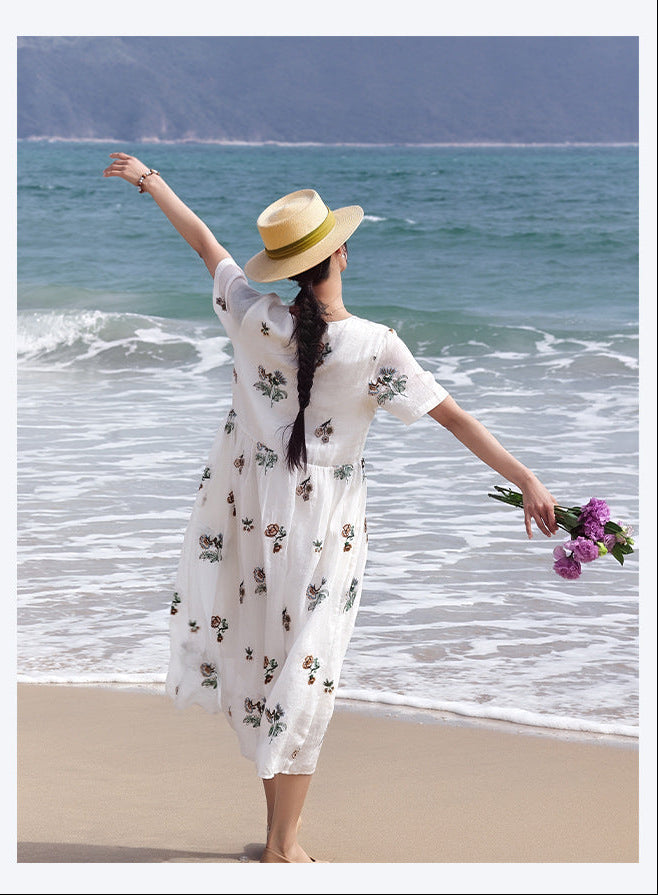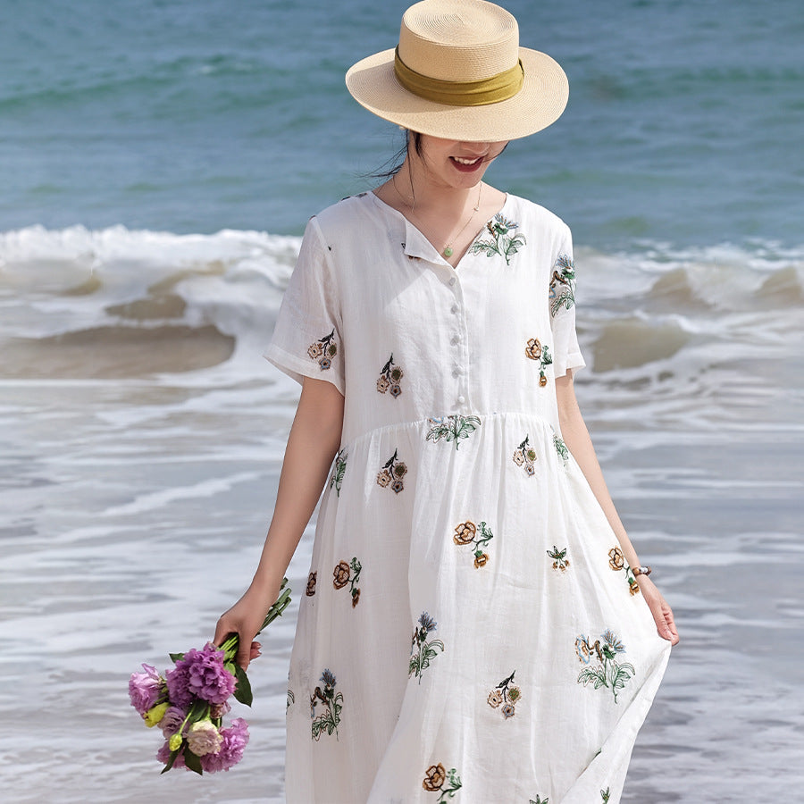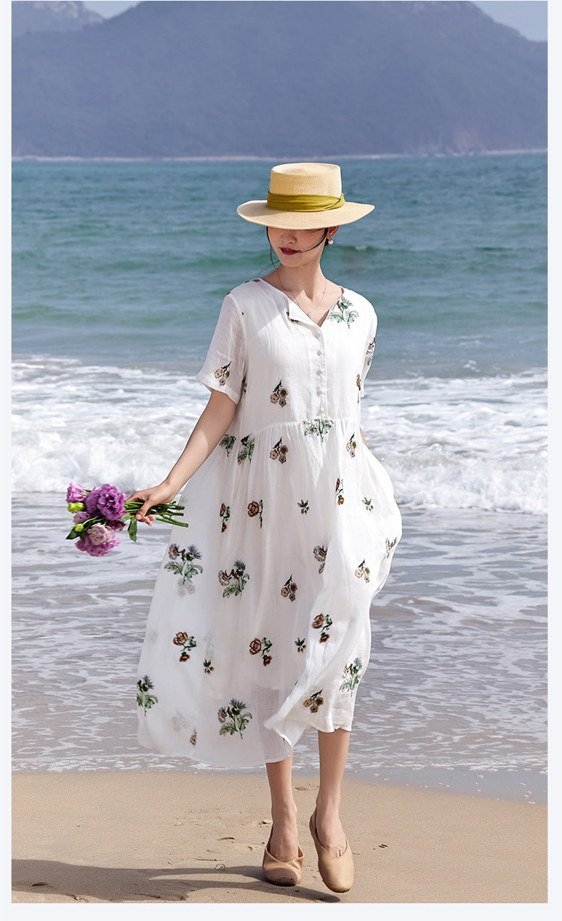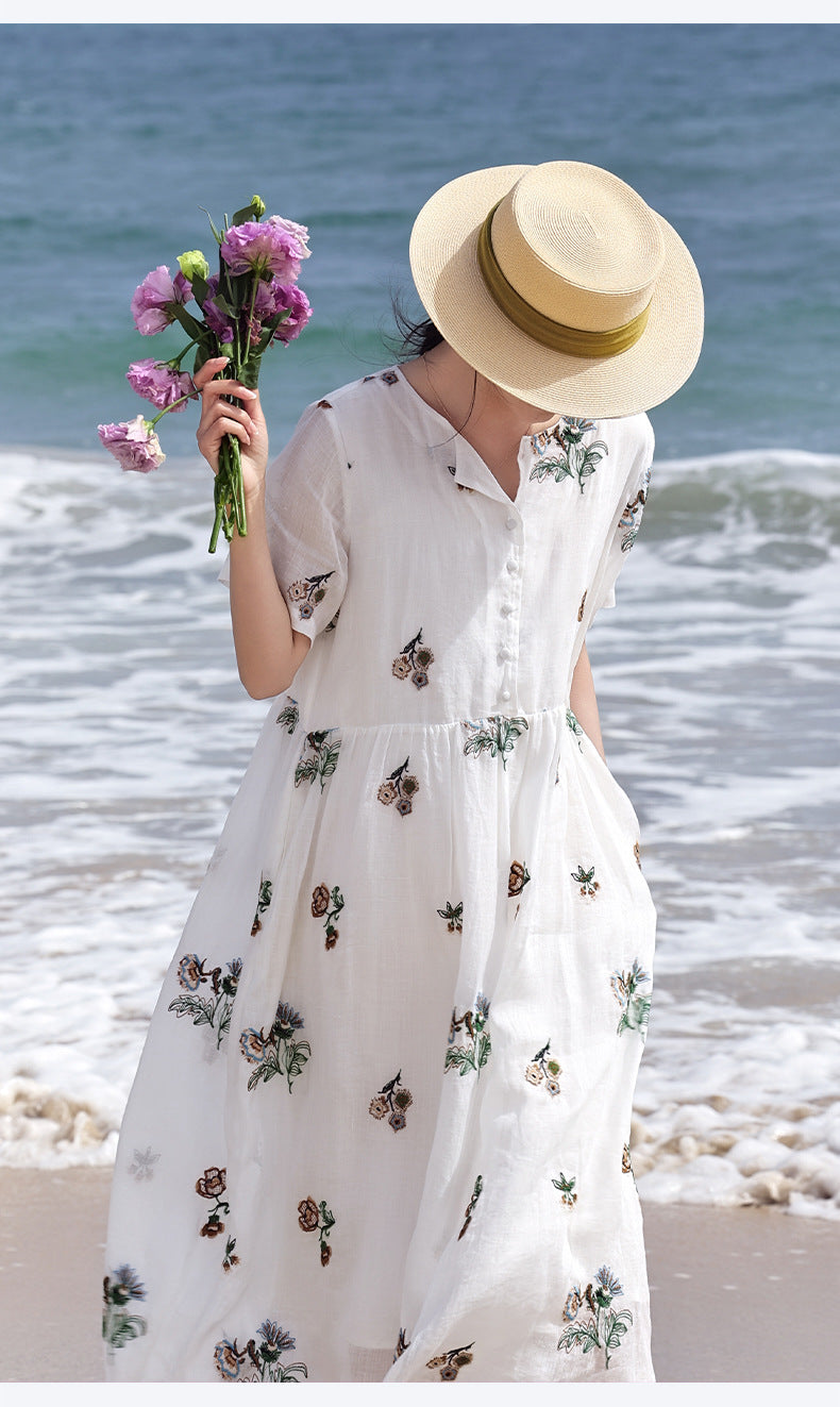 Mirabel Darling White Ramie Cheongsam Dress Embroidered Qipao